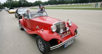 Die größte Cabrioparade der Welt rollte über die Trabrennbahn. 126 Wagen fuhren in der Kolonne über eine Strecke von zwei englischen Meilen. Ein neuer Weltrekord, der bis zum Jahresende gehalten werden soll.