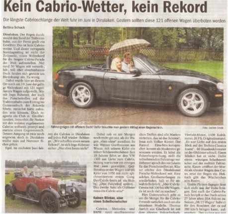 Egal, im nächsten Juni fahren die Cabrios in Dinslaken auf jeden Fall wieder Schlange. „Wir schaffen einen neuen Rekord“, ist sich Ingo Rübener sicher. „Nur eben heute nicht“.