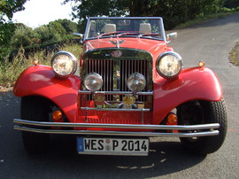 Dabei sah es am Morgen noch recht gut aus, als die Wagen „oben ohne“ anrollten. So wie Werner Gorthmanns aus Weeze, mit seinem Käfer ein reiner Schönwetterfahrer. Seit 10 Jahren fährt er den VW 1303 aus Liebe zum Cabrio, bislang war es nur ein einziges Mal nass geworden. Gorthmanns erster Wagen war ein Käfer von 1956 mit nicht synchronisiertem ersten Gang. Das Cabrio heute ist ein Hobby. „Den Fahrwind spüren... Das zweite Auto als Oldtimer muss ein Cabrio sein!“
