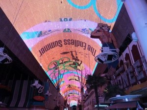 Die gesamte Strasse ist von einer kuppelförmigen LED Leinwand überspannt, dem "Fremont Street Experiance", auf der bei Dunkelheit verschiedene Shows vorgeführt werden. 12,5 Millionen LED´s, 220 Lautsprecher mit 550.000 Watt Gesamtleistung.