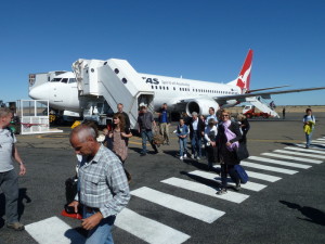 Nach gut 3,5 Flugstunden Ankunft auf dem "National Airport Alice Springs". Zu Fuß geht´s zum Terminal und zum Gepäckband 2 (von 2). Das gesamte Gelände ist recht überschaubar und erinnert eher an den