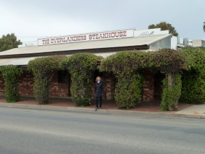 Abendessen im berühmten "Overlanders Steakhouse", das sich selbst als "Spirit of the Outback" bezeichnet. Ein Muß, die "Stuart´s Tucker Bag": Crocodile, Camel, Emu and Kangaroo served on a Bed of mashed Potatos and Peas.