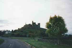 Der Rock of Cashel in der Stadt Cashel, etwa 20 km nördlich von Cahir im County Tipperary. Der Berg erhebt sich 65 m hoch und gilt als irisches Wahrzeichen. Als Sitz von Feen und Geistern wurde er schon im Altertum verehrt.