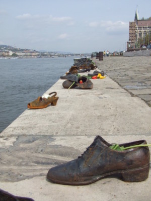 "Schuhe am Donauufer" in Budapest, Mahnung an die Progrome an Juden in Ungarn während des Zweiten Weltkriegs.